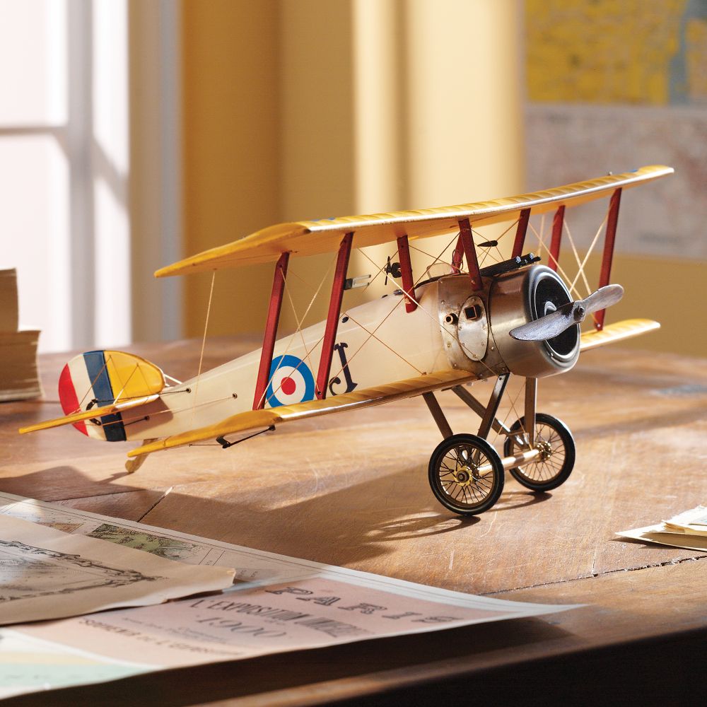 Handmade with silk canvas over a wooden frame, this model captures a piece of military history and celebrates the fighter plane that eventually brought down Germany's most feared pilot, the Red Baron. There are only seven original Sopwith Camels still in existence, on display at aviation museums in such diverse places as Little Rock, Arkansas, and Krakow, Poland.